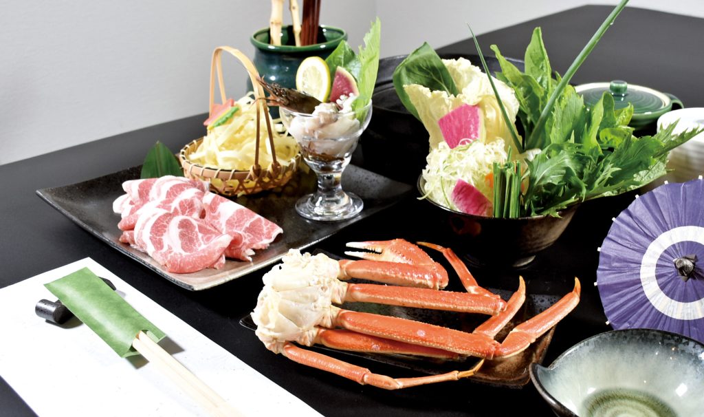・ローズポーク豚肩ロース ・ずわい蟹 ・有頭海老 ・甲イカ ・きのこ盛り合わせ