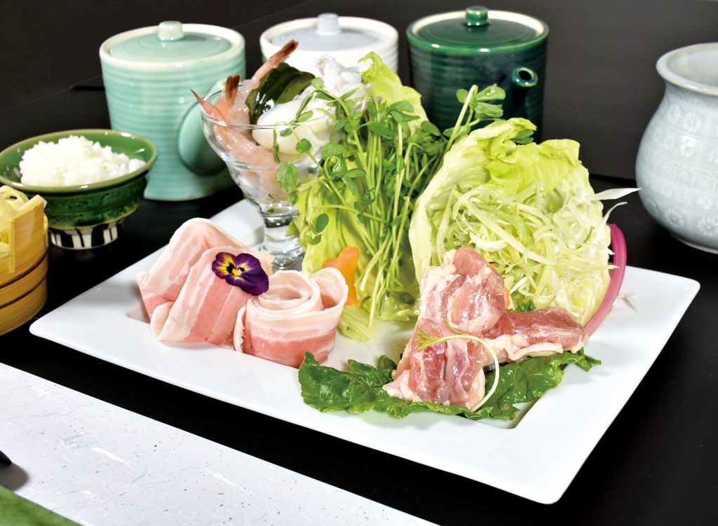 「野菜セット」は選択されたお鍋によって、種類が変わります。 ※季節によって変わります。 ▶しゃぶしゃぶ彩りお野菜 ▶すきやきお野菜(しらたき・豆腐付)