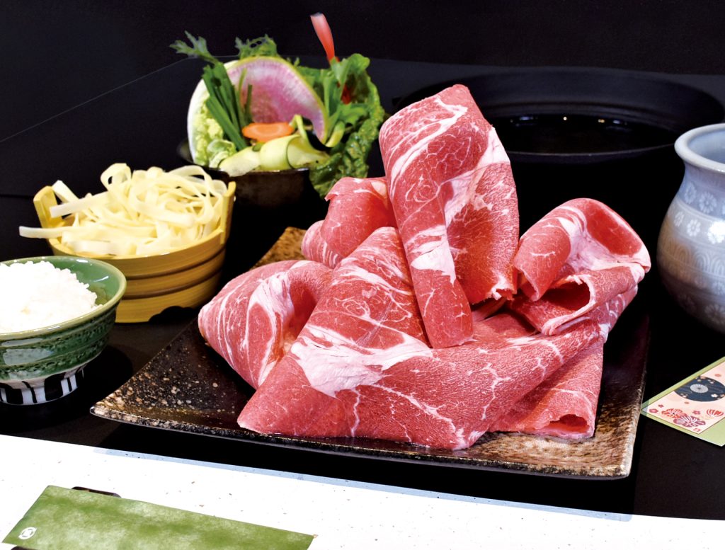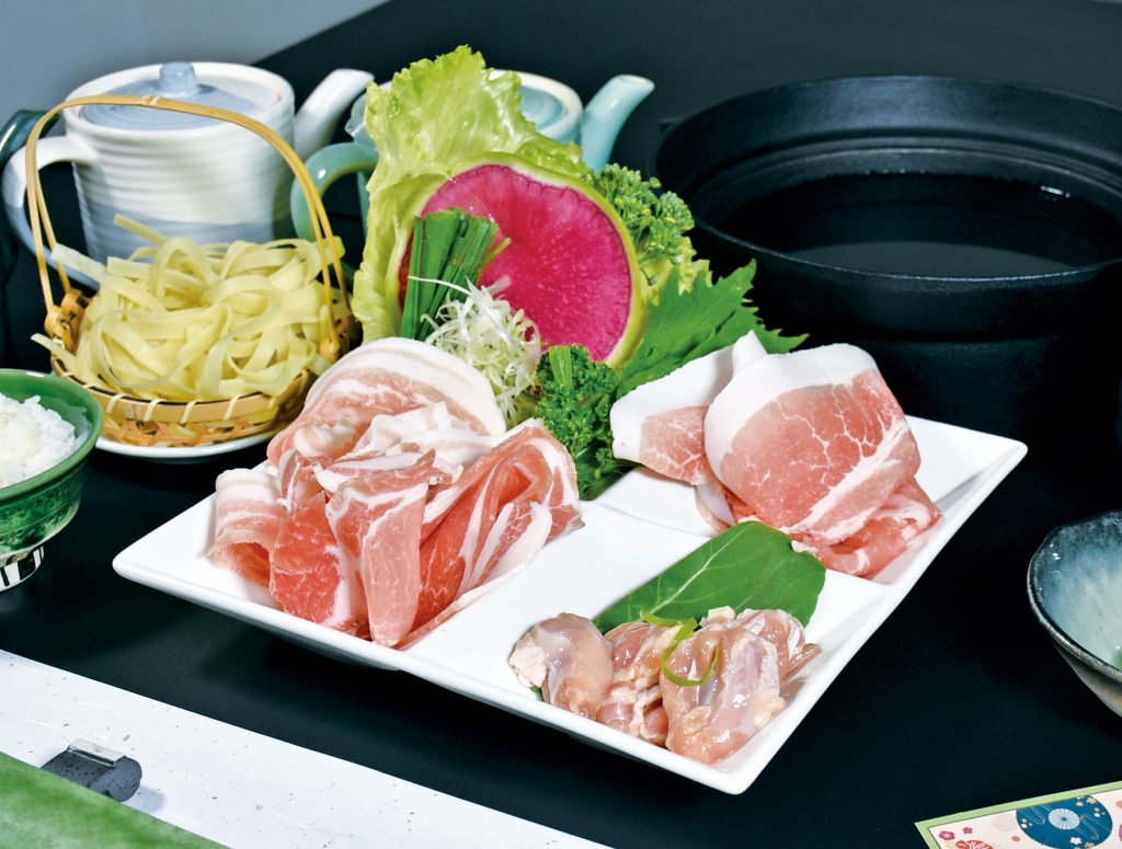 ■ローズポーク豚肩ロース ■サスティナブルポーク風車豚カルビ ■国産豚もも ■国産鶏もも きしめん&ごはん付き