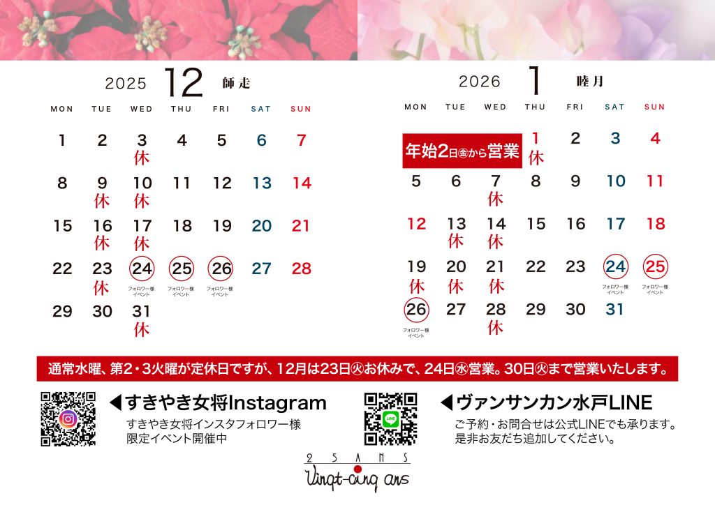 年末年始は混み合うことが予想されますので事前のご予約をおすすめいたします。