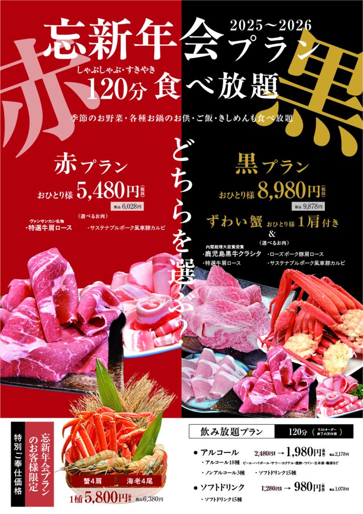 日頃のご愛顧に感謝を込めて、今年も 忘新年会プラン を2つご用意いたしました。