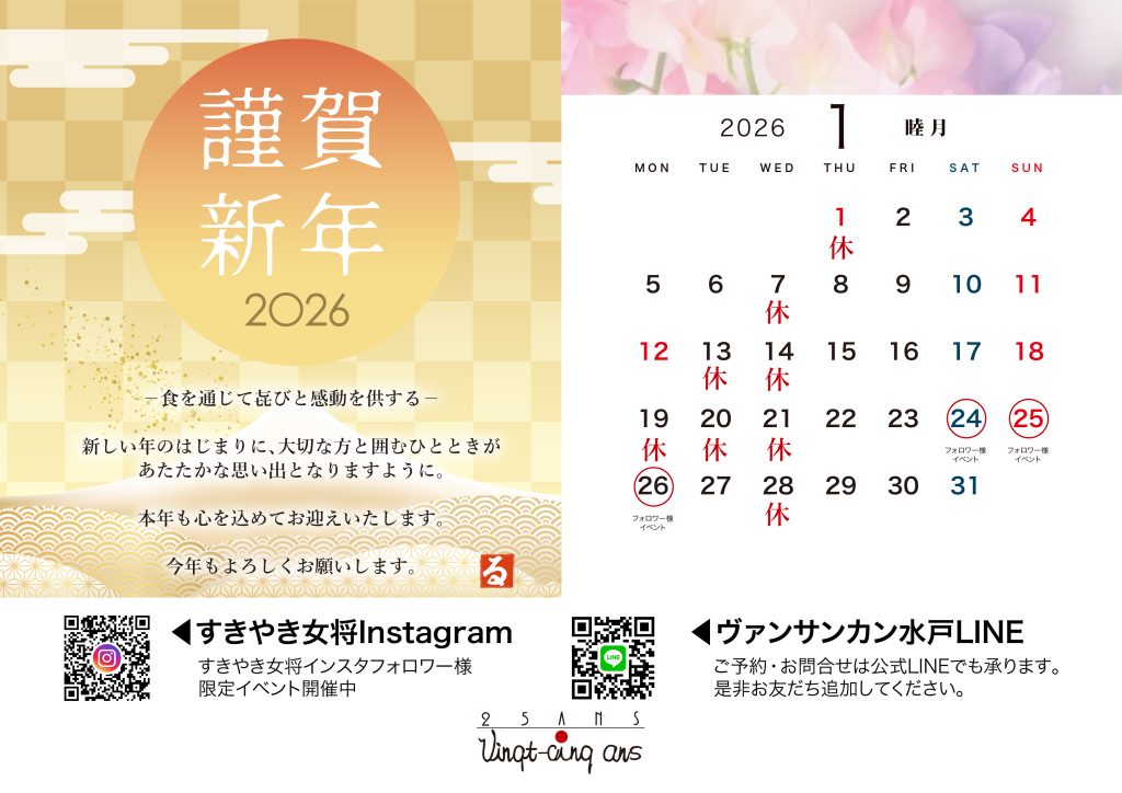 旧年中は格別のご愛顧を賜り、心より御礼申し上げます。