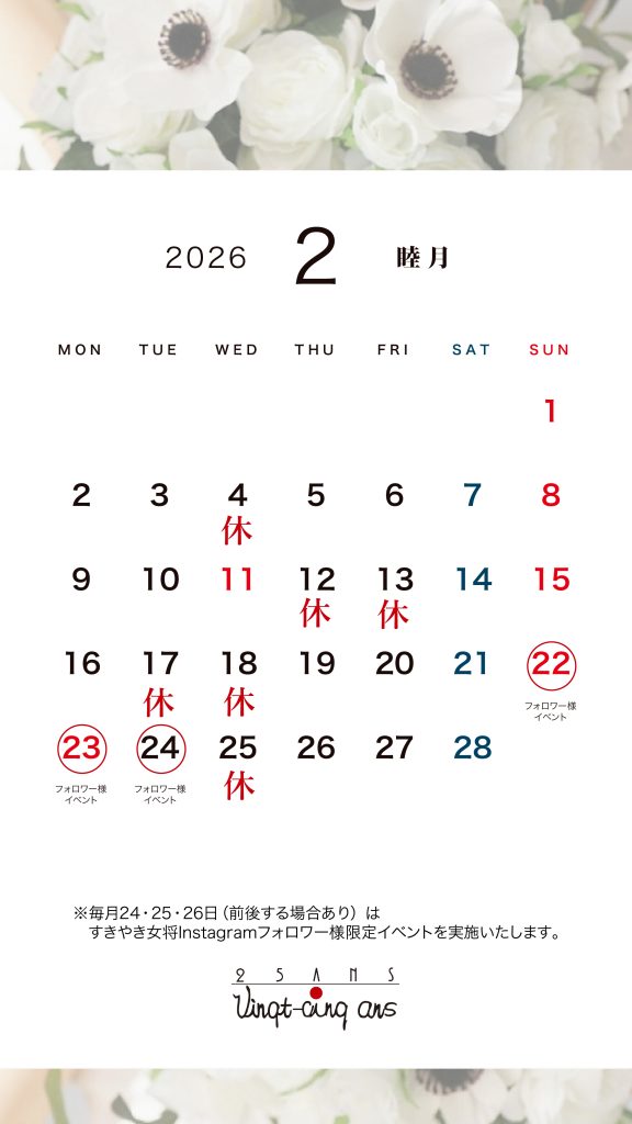 2月の営業カレンダーのお知らせ